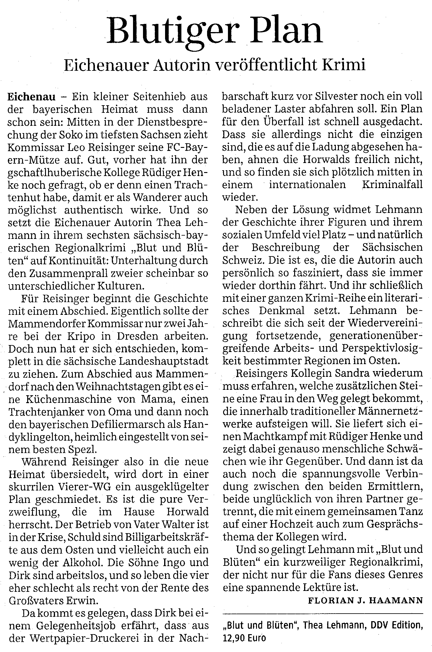 Süddeutsche Zeitung FFB, 30./31. Januar 2021 zu "Blut und Blüten"